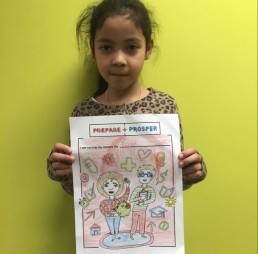 22. Taxes coloring sheet. We commissioned a tax-inspired color sheet for kids and hung the completed ones around the preparation area.